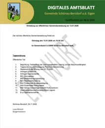 Das Amtsblatt der Gemeinde informiert regelmäßig über amtliche Bekanntmachungen, Beschlüsse des Gemeinderates, öffentliche Termine sowie weitere wichtige Informationen aus der Gemeindeverwaltung. Es dient der transparenten und verlässlichen Information aller Bürgerinnen und Bürger.
